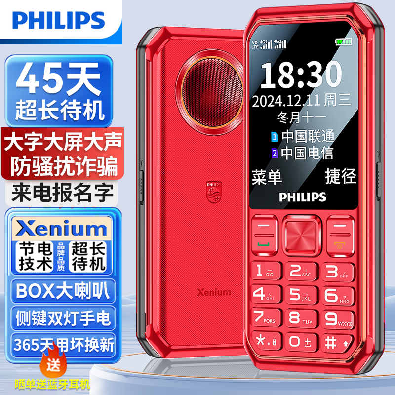 [官方旗舰店]飞利浦E588A新款三防老人机超长待机4G全网通正品老年手机大屏大字大声音电信版学生专用手机