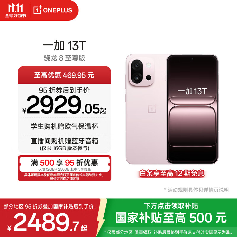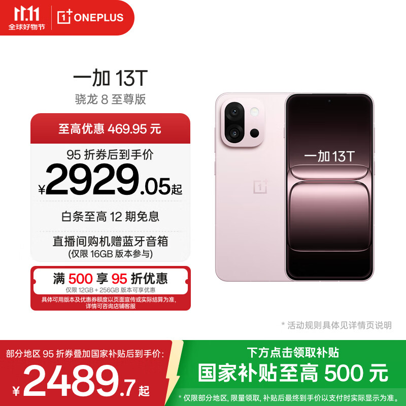一加 13T 性能超强小直屏 高通骁龙 8 至尊版 6260mAh 冰川电池 AI手机 小屏大魔王 怦然粉 12GB+256GB