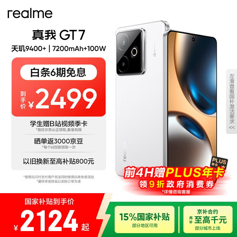 realme【国家补贴】真我GT7 天玑9400+ 轻薄大电池快充长续航 超声波3D指纹 电竞AI游戏5G手机 12+256白