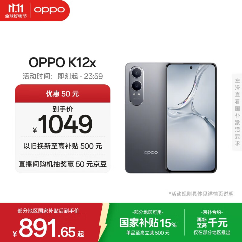 OPPO K12x 12GB+256GB 钛空灰 政府国家补贴 120Hz旗舰级OLED直屏 80W闪充 5500mAh大电池 骁龙5G手机