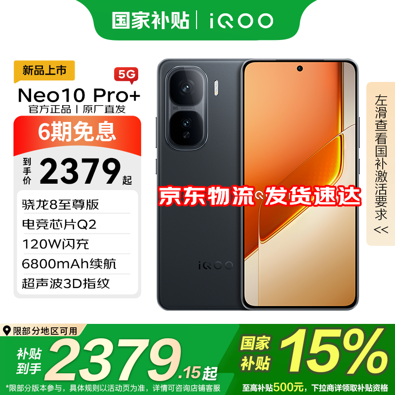 vivoiQOO Neo10pro+ 国家补贴 骁龙8至尊版 自研电竞芯片Q2 超声波3D指纹 新品5G 学生游戏电竞手机 疾影黑 16GB+512GB 活动专享版