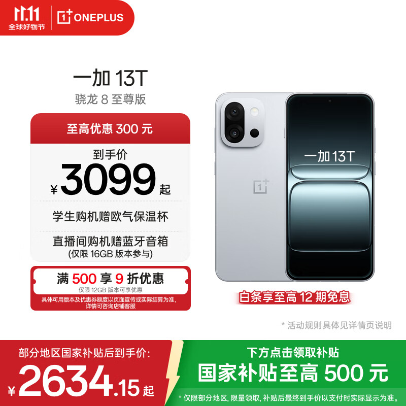 一加 13T 性能超强小直屏 高通骁龙 8 至尊版 6260mAh 冰川电池 AI手机 小屏大魔王 晨雾灰 12GB+256GB