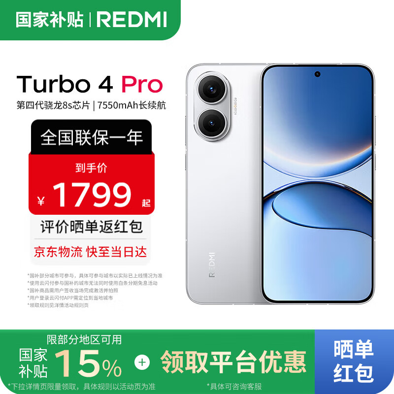小米红米Turbo4 Pro 国家补贴 第四代骁龙8s 7550mAh长续航 新品5G手机 白色 12GB+256GB