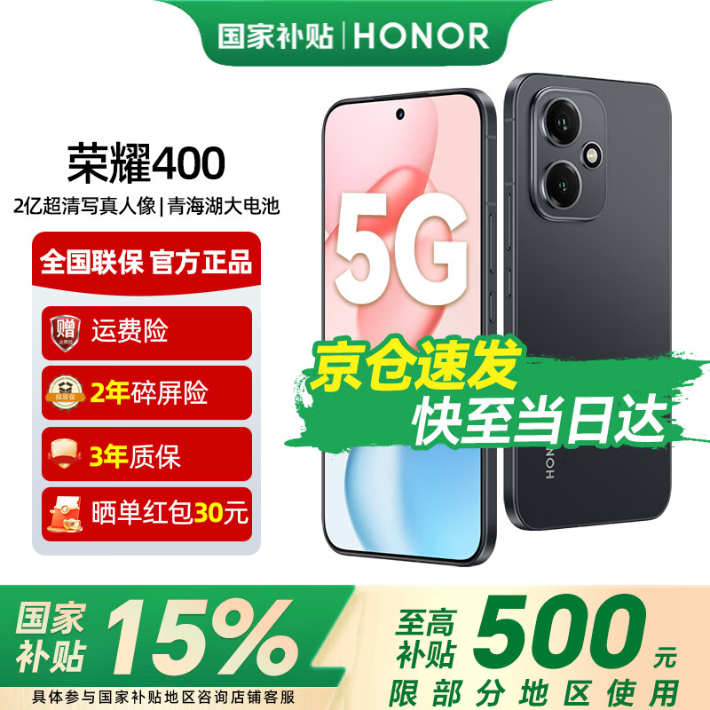 荣耀400 Pro 2亿超清写真人像 7200mAh青海湖大电池 新品5G手机 幻夜黑 16GB+512GB【2年碎屏险+2年延保】 官方标配【国家补贴15%】