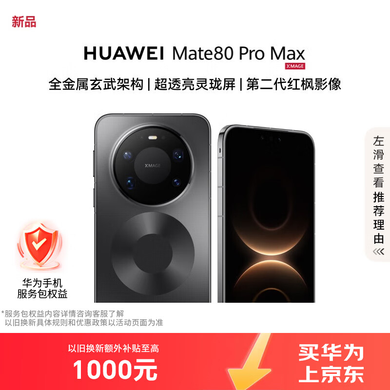 华为(HUAWEI)Mate 80 Pro Max 16GB+512GB极夜黑 全金属玄武架构超透亮灵珑屏 华为手机【服务包权益套装】