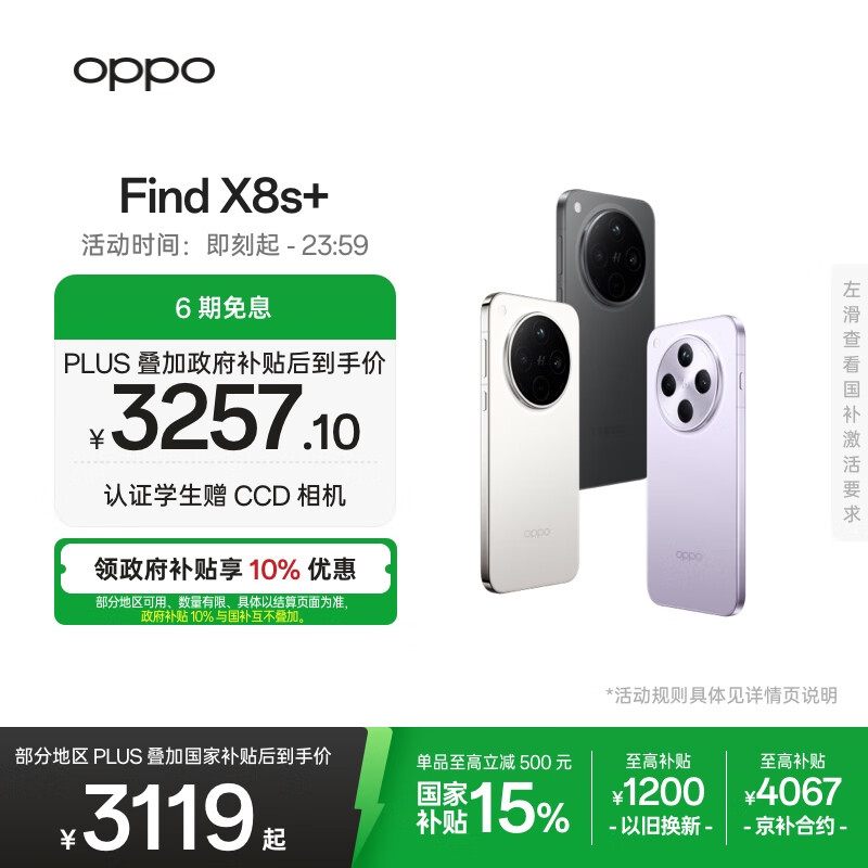 OPPO Find X8s+ 极窄四等边直屏 天玑9400+ 超长续航冰川电池 哈苏人像 ColorOS 15 AI 5G旗舰手机 月光白 12GB+512GB