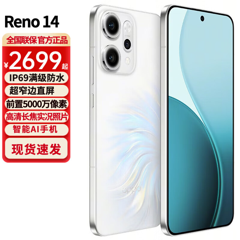 OPPO Reno14 高清长焦实况照片 Live图神机 新款5G智能 学生拍照 AI手机 【国家补贴】 人鱼姬 16GB+512GB 全网通 官方标配