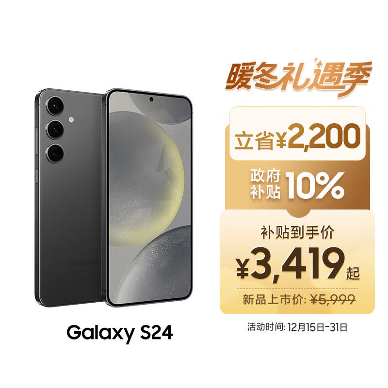 三星Samsung Galaxy S24 AI手机 5000万像素 游戏手机 拍照手机 12GB+256GB 水墨黑 国家政府补贴