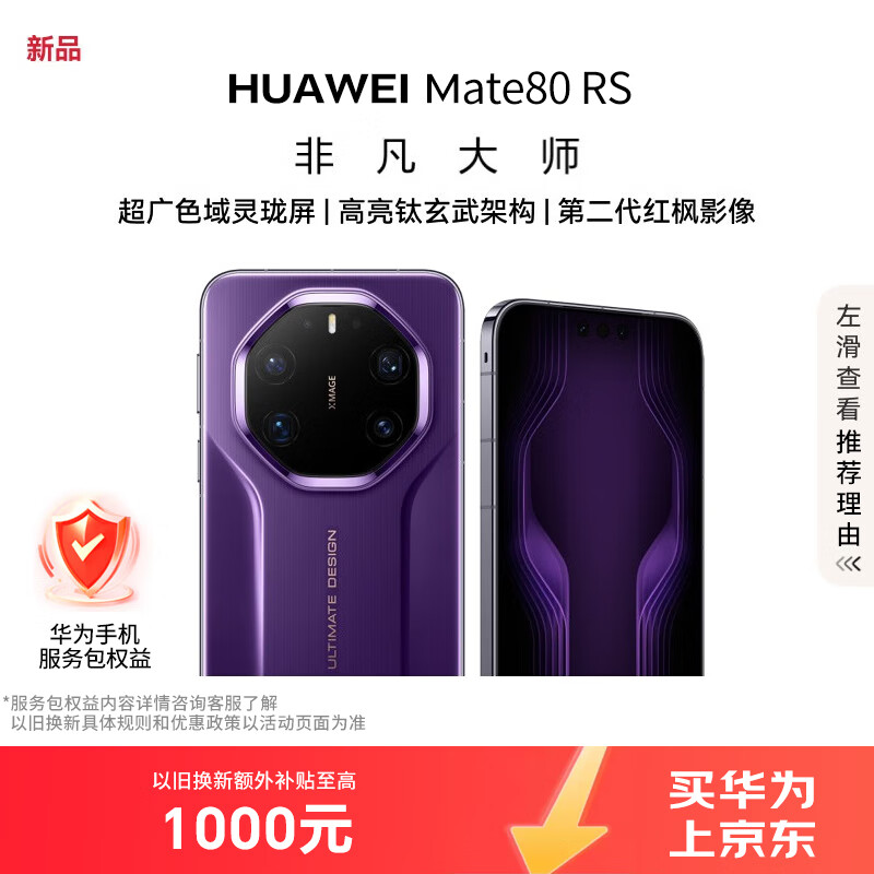 华为(HUAWEI)Mate 80 RS 非凡大师20GB+512GB槿紫 超广色域灵珑屏高亮钛玄武架构 华为手机【服务包权益套装】