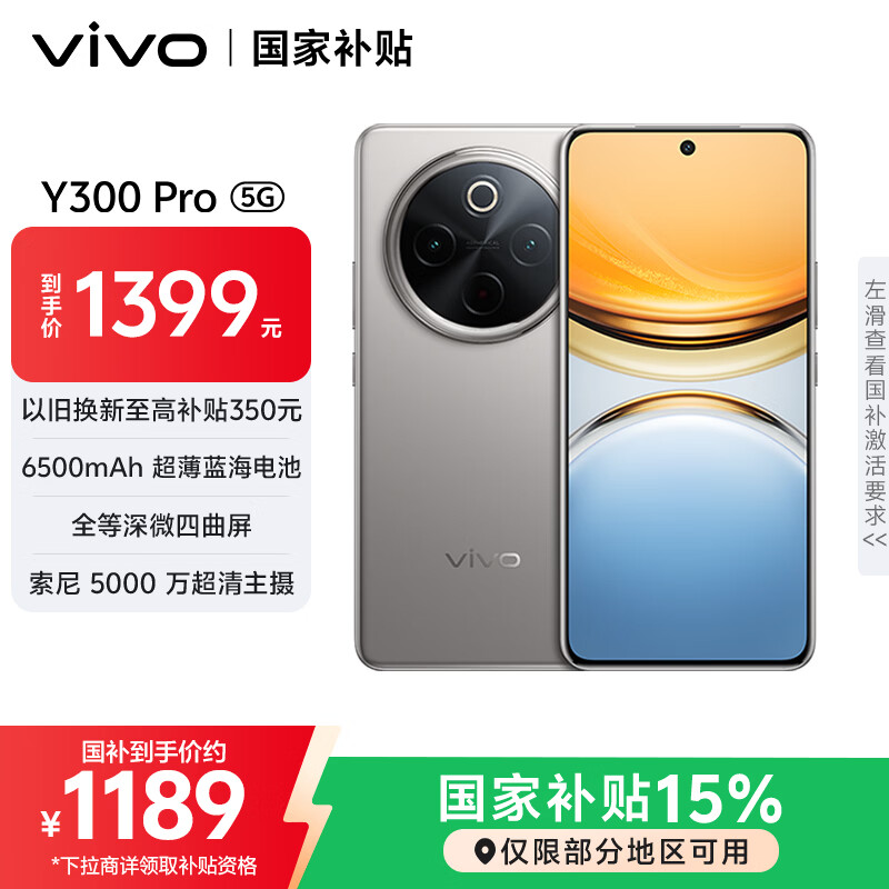 vivo Y300 Pro 8GB+256GB 钛色 国家补贴 6500mAh超薄蓝海电池 全等深微四曲屏 AI 拍照 手机