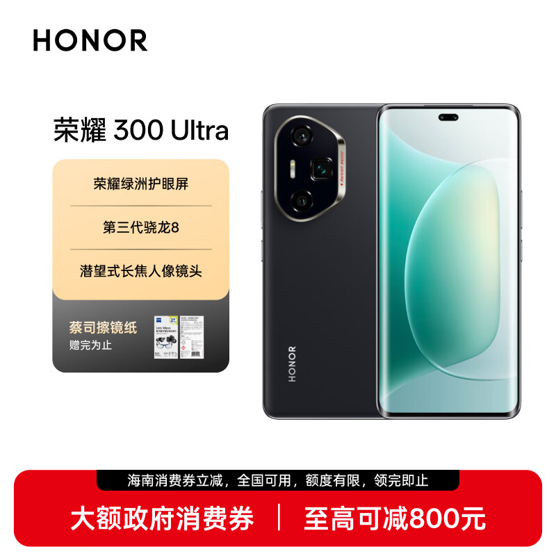 荣耀300 Ultra 单反级雅顾人像 5000万潜望长焦 12+512 墨岩黑 5G AI 新款 拍照手机
