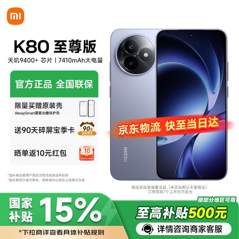 小米REDMI K80至尊版 国家补贴 5G智能旗舰手机 K80 Ultra 高性能游戏电竞小米手机 冰锋蓝 12GB+512GB 官方标配