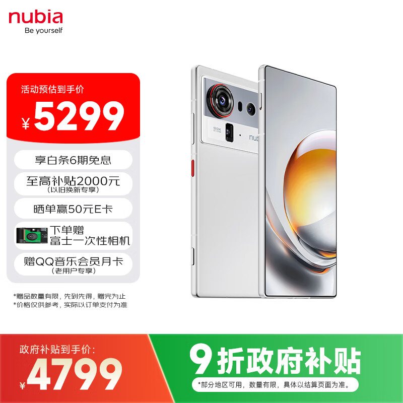 努比亚(nubia)Z80 Ultra 【限时赠富士一次性相机】第五代骁龙8至尊版 16+512GB 凝光白 5G游戏AI手机 国家补贴