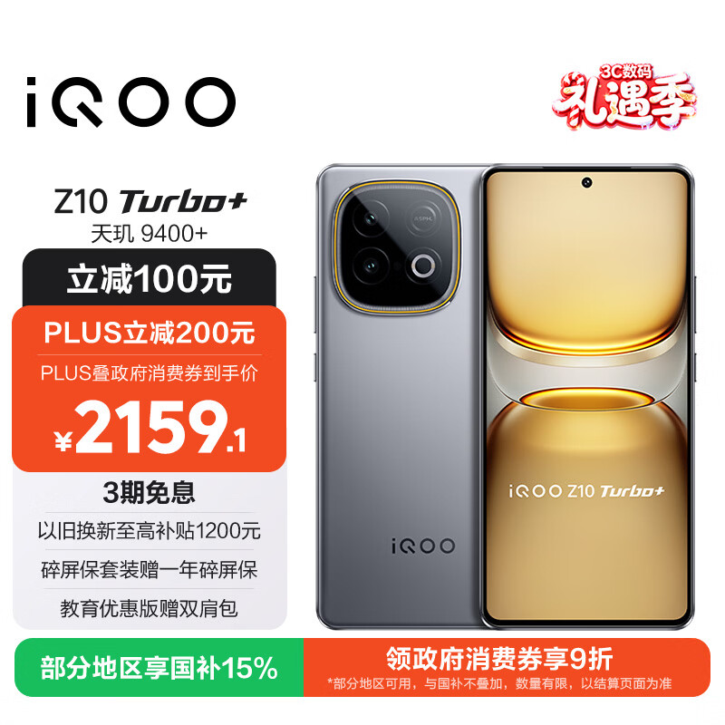 vivo iQOO Z10 Turbo+ 12GB+512GB 极地灰 天玑9400+旗舰芯 8000mAh超薄蓝海电池 国家补贴 电竞手机