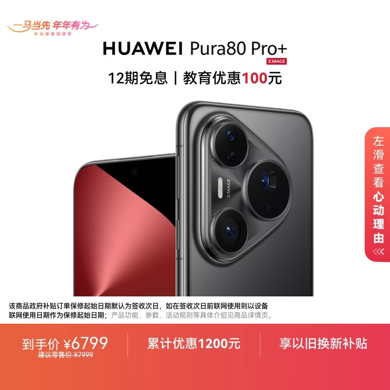 HUAWEI Pura 80 Pro+ 16GB+512GB 釉黑一英寸高动态主摄 个性色卡AI辅助构图 华为鸿蒙智能手机