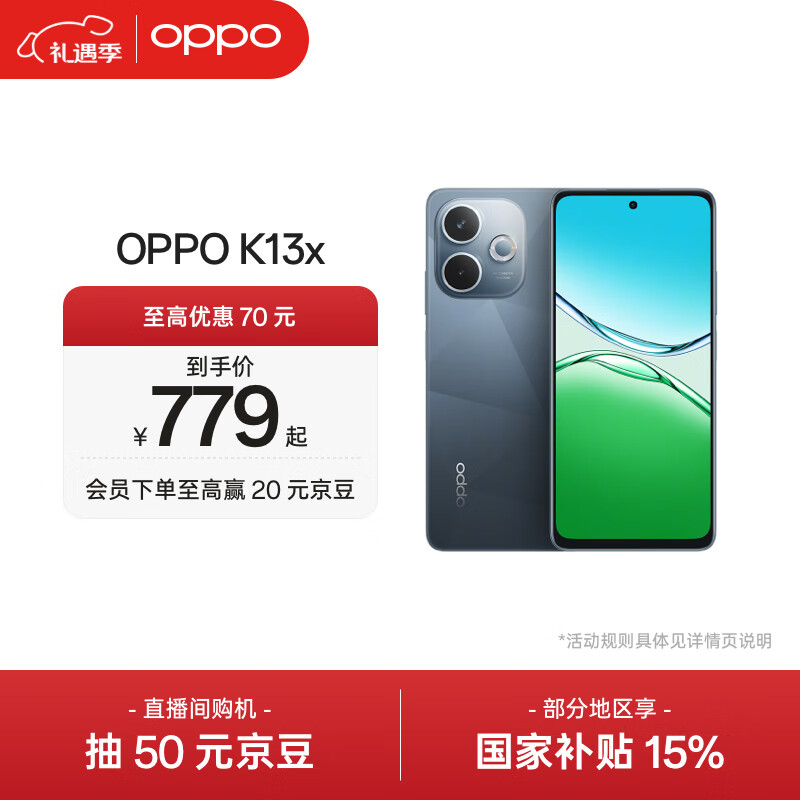 OPPO K13x 5G 全新千元性能神机 信号穿墙王 超流畅ColorOS 15 IP69 防尘防水 手机【新品上市】 矅黑 8GB+256GB