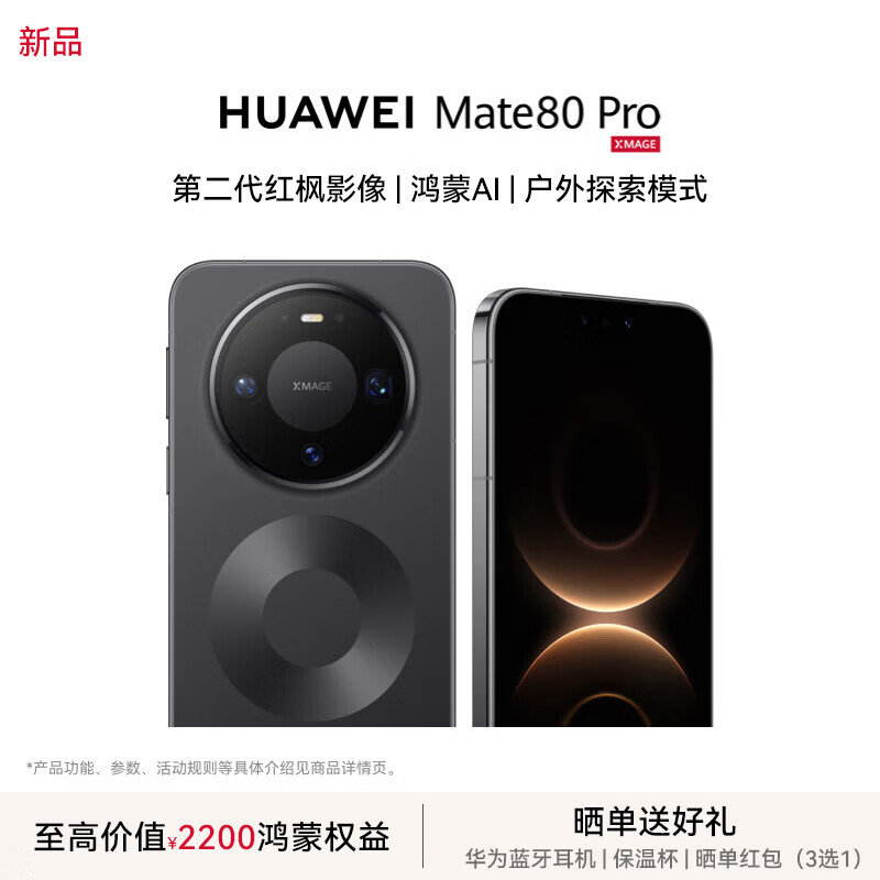 HUAWEI Mate 80 Pro 第二代红枫影像 鸿蒙AI 新品旗舰手机华为mate80pro手机 曜石黑 12GB+512GB 官方标配