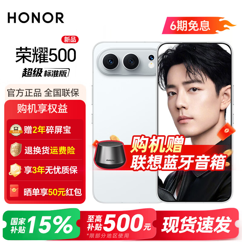 荣耀500 【肖战同款】 新品5G手机 2亿人像全能实况 荣耀400 升级版 AI手机 月光银 12GB+256GB 官方标配