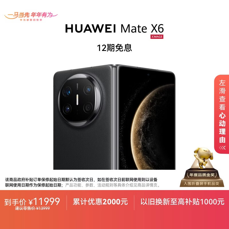 HUAWEI Mate X6 12GB+512GB曜石黑分布式玄武架构 鸿蒙大屏AI 红枫原色影像折叠旗舰手机 折叠屏