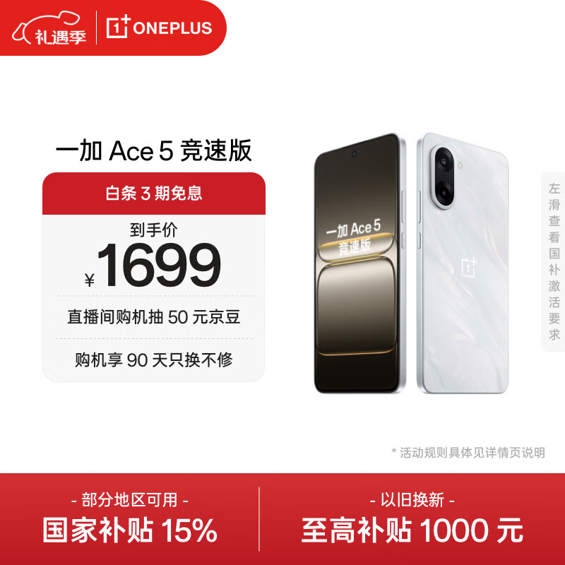 一加 Ace 5 竞速版 12GB+256GB 逐浪白 oppo 天玑 9400e 旗舰芯 游戏智能电竞性能手机 国家补贴