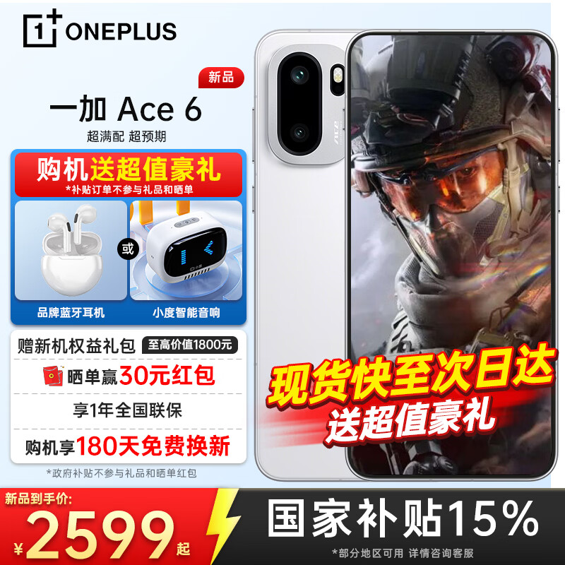 一加【国家补贴】一加 Ace 6手机 165hz高刷 新品游戏电竞智能手机 骁龙8至尊版 直屏一加ace6手机 闪白 12+256 官方标配