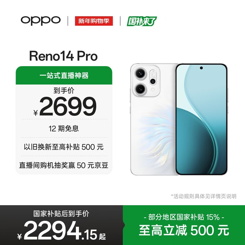 OPPO Reno14 Pro 12GB+256GB 人鱼姬 直播神器 全新小直屏无线充电 AI拍照5G智能手机学生游戏国家补贴