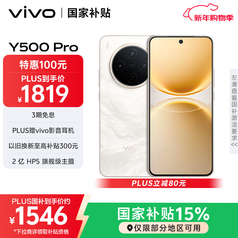 vivo Y500 Pro 8GB+256GB 祥云金 2亿HP5旗舰级主摄 7000mAh蓝海电池 IP68+IP69满级防水 AI影像手机