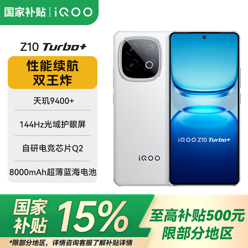 vivoiQOO Z10 Turbo+【国家补贴15%】 新品5G手机 8000mAh超薄蓝海电池 天玑9400+电竞手机 云海白 16GB+512GB 官方标配