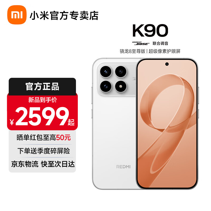 小米红米k90 新品5G手机 骁龙8至尊版 7100mAh大电池 青山护眼 REDMI k90小米新机红米手机 白色 12GB+256GB 【官方标配】