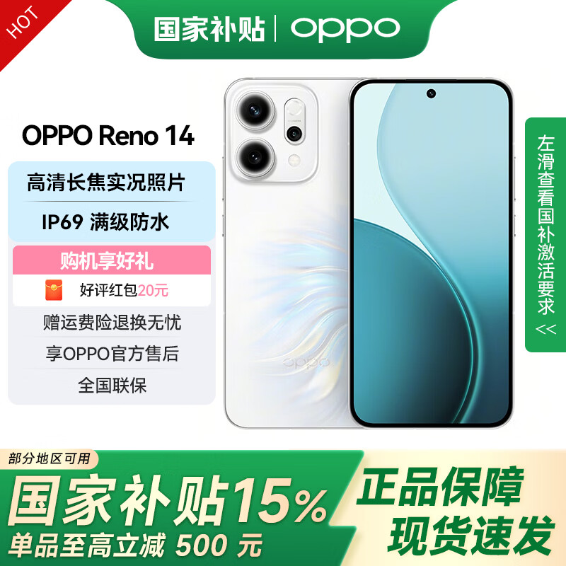 OPPO Reno14 【国家补贴】高清长焦实况照片 Live图神机 新品5G智能学生拍照AI手机 人鱼姬 16GB+512GB 官方标配