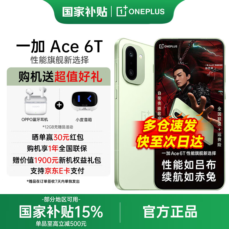 一加 Ace 6T 国家补贴 第五代骁龙8 165Hz超高刷电竞屏 学生游戏oppo智能5G手机 掠影绿 12GB+256GB 官方标配【国家补贴】