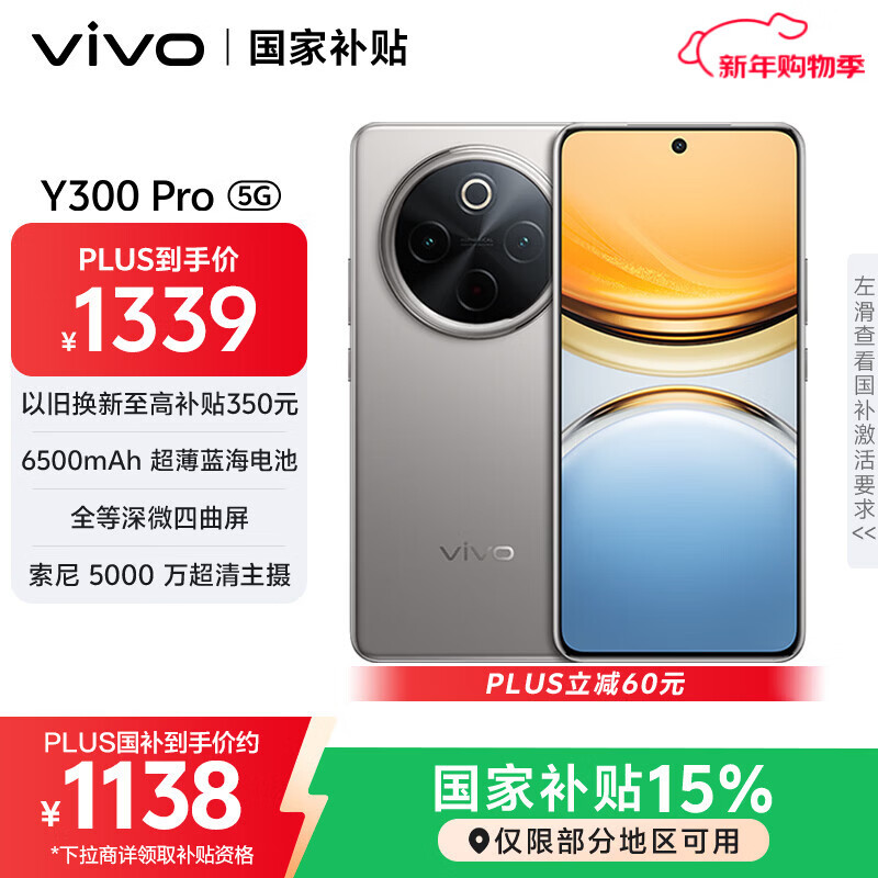 vivo Y300t 8GB+256GB 海蓝 国家补贴 6500mAh超薄蓝海电池 天玑7300长久流畅芯 全功能NFC AI手机