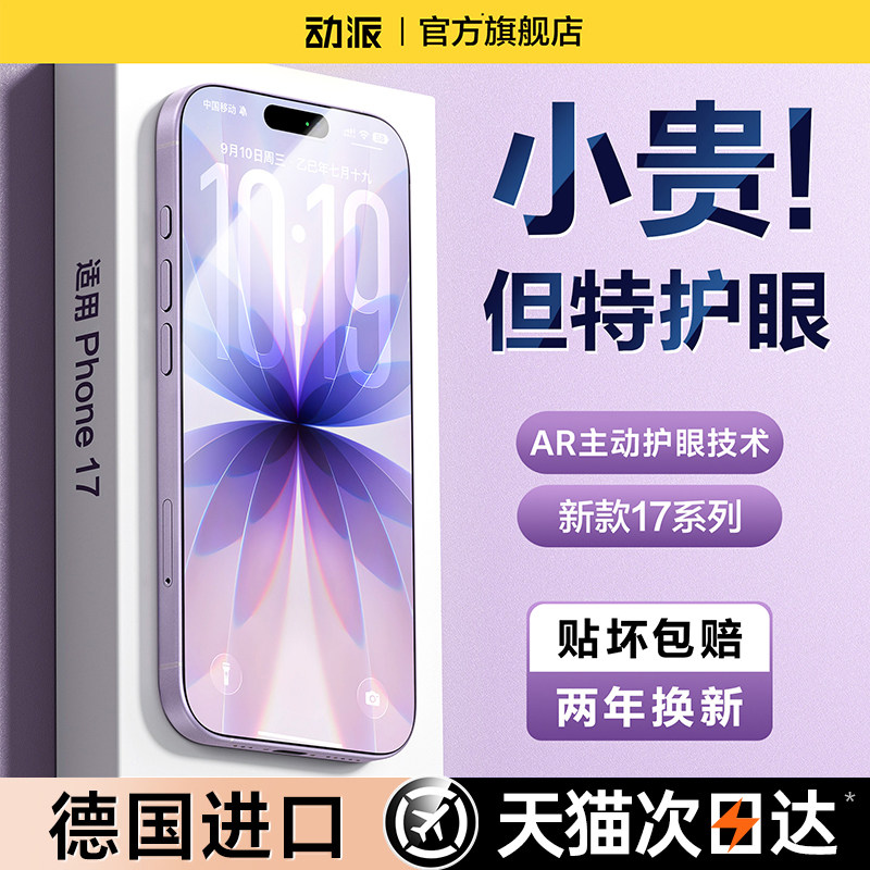 【超越AR德国护眼】动派适用苹果17钢化膜iphone17promax手机贴膜16新款air防窥15全屏14plus抗反射13蓝光12p