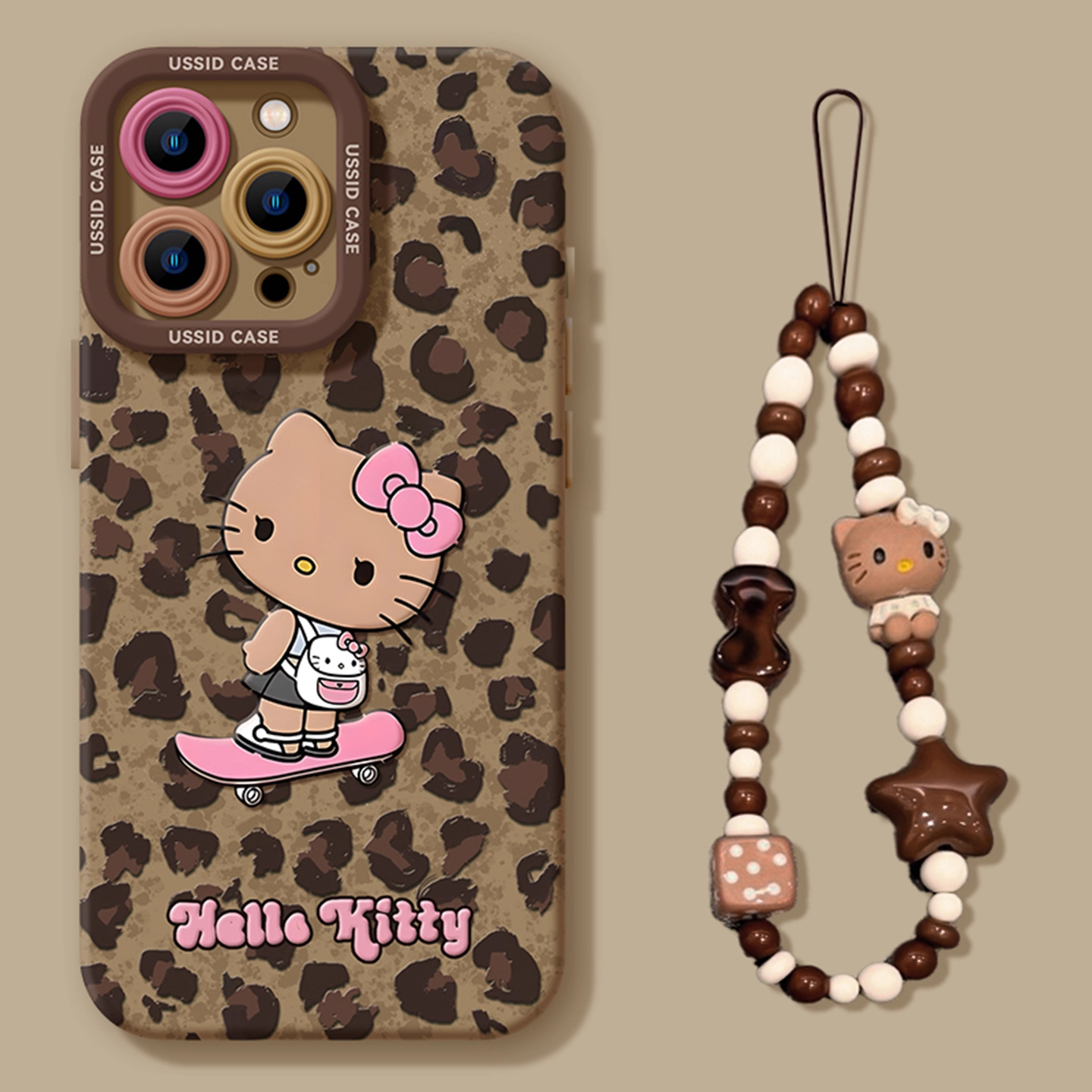 滑板豹纹凯蒂猫适用苹果17手机壳iphone16新款pro高级创意max卡通13情侣12手链14Pro网红全包11硅胶x防摔软壳