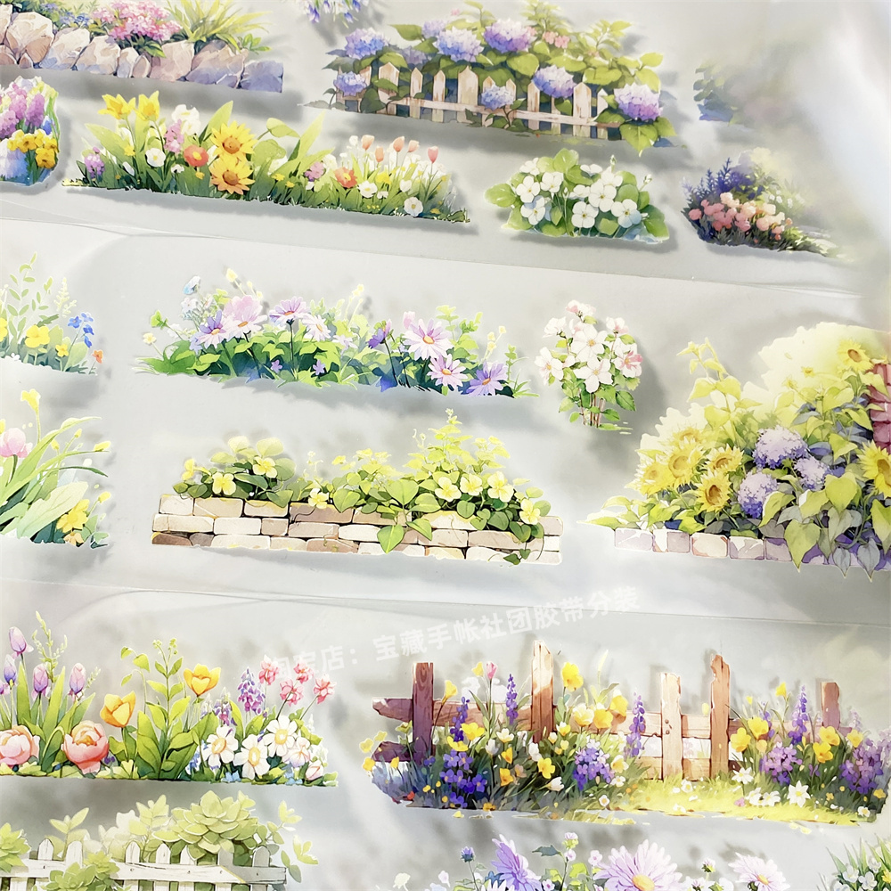手帐分装胶带a117绿意盎然古风PET素材账手机壳贴纸篱笆小草花朵