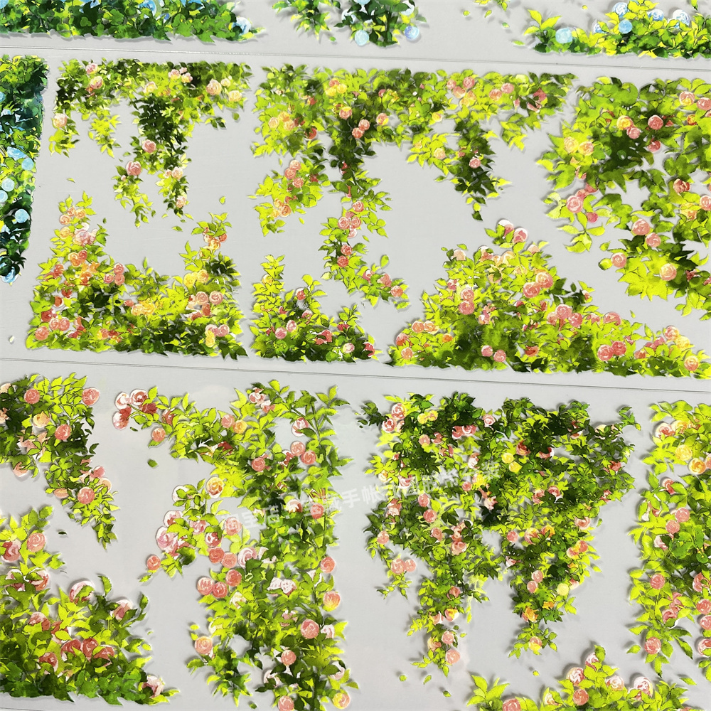 手帐分装胶带t4夏日蔷薇景物志绿黄花叶PET古风素材账手机壳贴纸