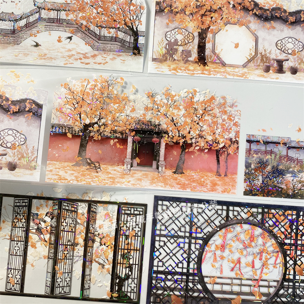 手帐分装胶带浮华一梦zero暗夜灯火庭院古风PET素材账手机壳贴纸