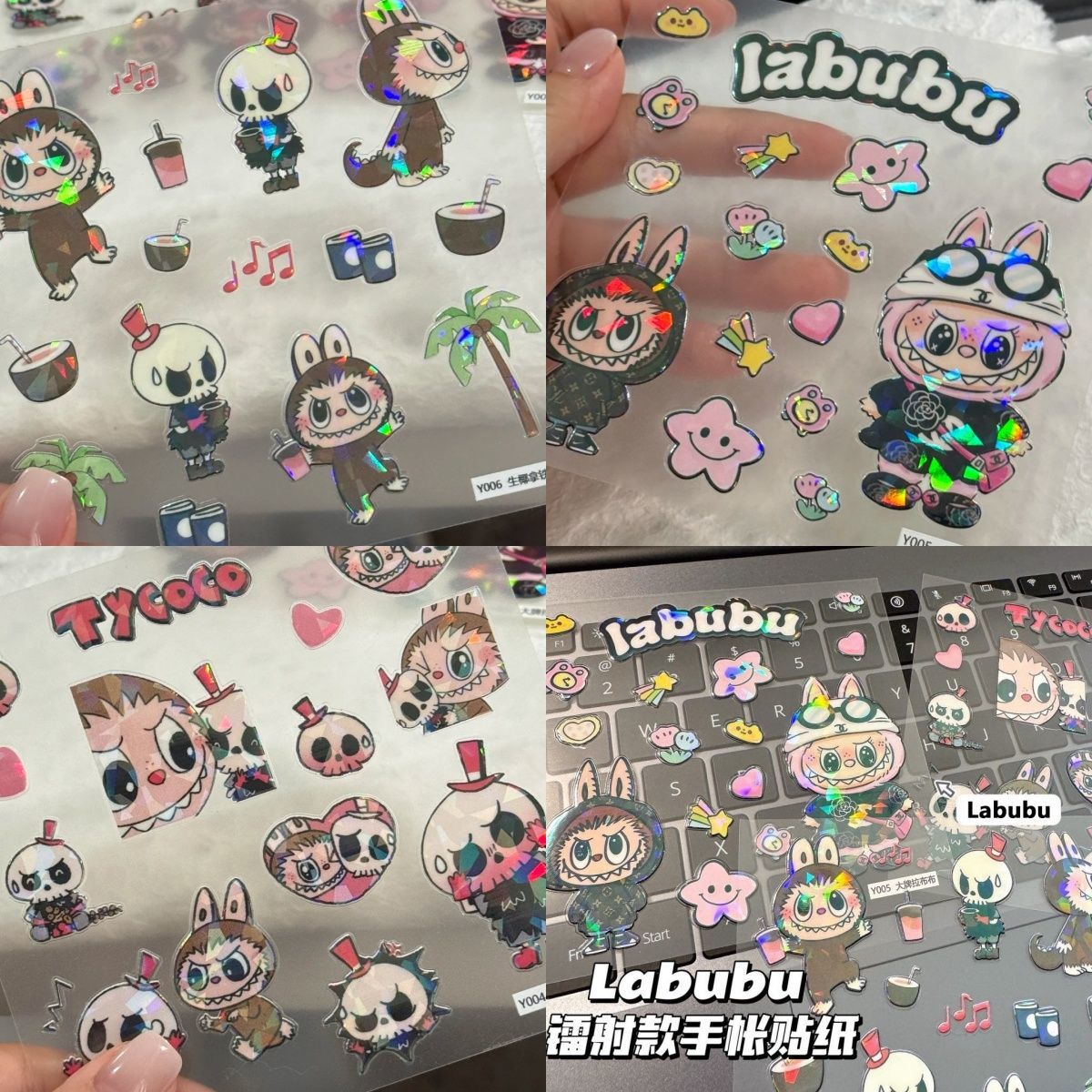 labubu拉布布可爱卡通镭射贴纸立体diy装饰冰箱水杯手机壳贴防水