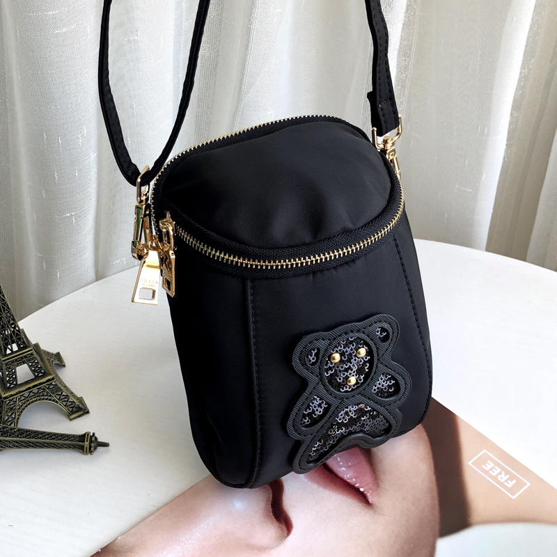 2023时尚新款亮片小熊包迷你手机小包休闲小方包防水尼龙布斜挎包