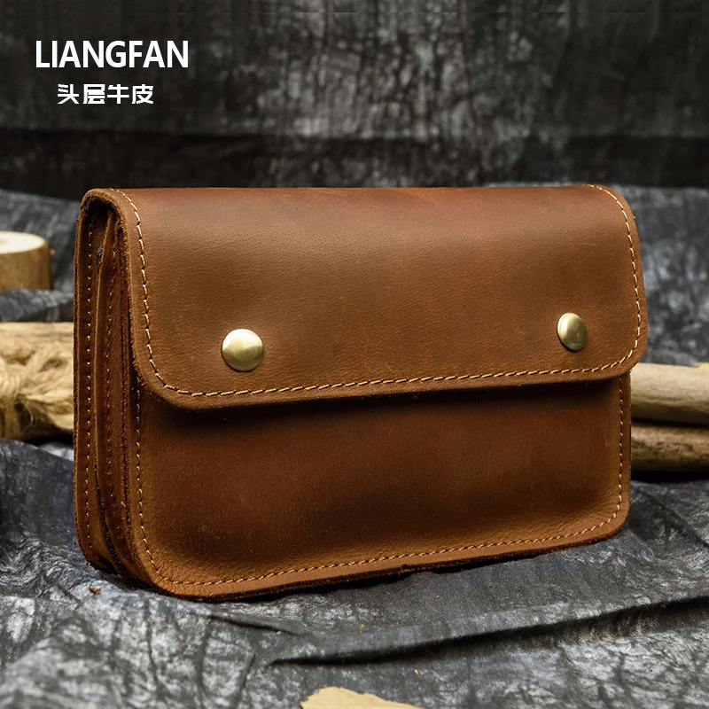 疯马牛皮手机包腰包男款横版双层工地干活挂腰穿皮带横款皮套夏季