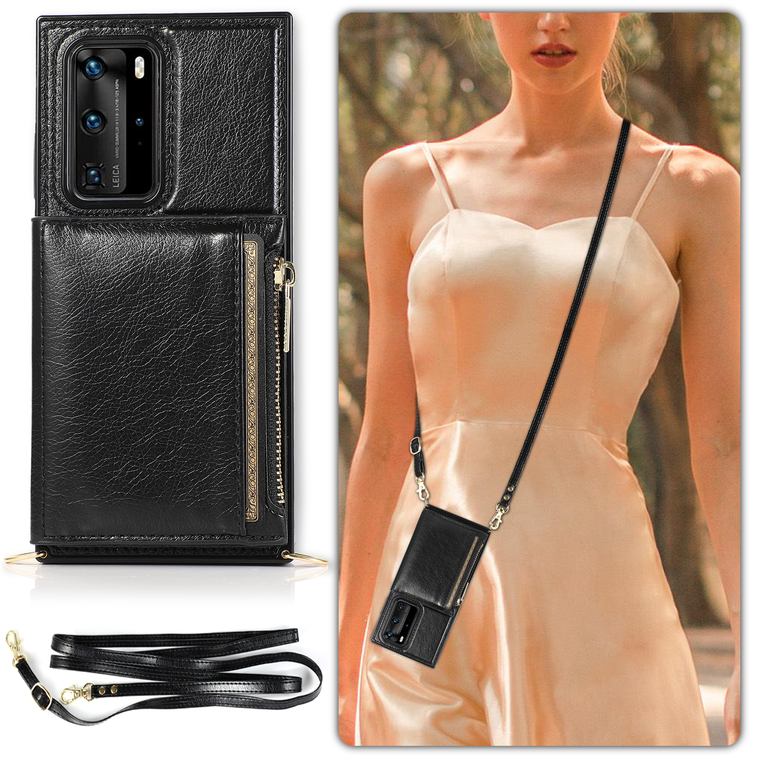 适用于华为mate20/30/40pro皮质p40pro+手机壳斜挎长挂绳mate40epro插卡钱包式挂脖零钱p30pro背带一体防摔套
