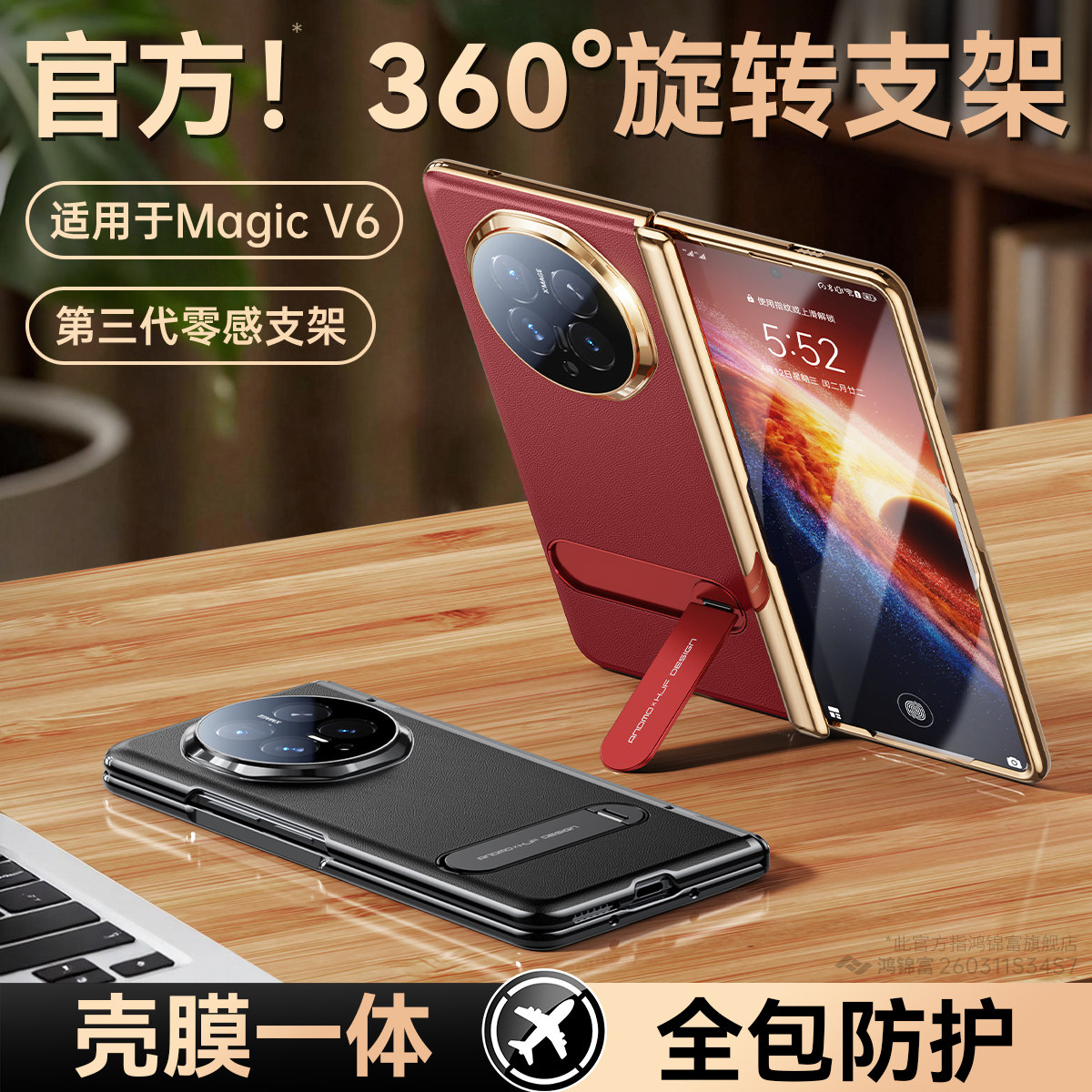 【零感支架】适用荣耀v6手机壳新款magicv6折叠屏真皮壳膜一体保护壳中轴全包镜头防摔旋转支架外壳超薄男女