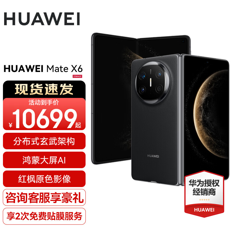 HUAWEI Mate X6新品旗舰机上市 matex6折叠屏手机【全国现货/可闪送】分布式玄武架构 鸿蒙大屏AI 曜石黑 12GB+512GB 官方标配