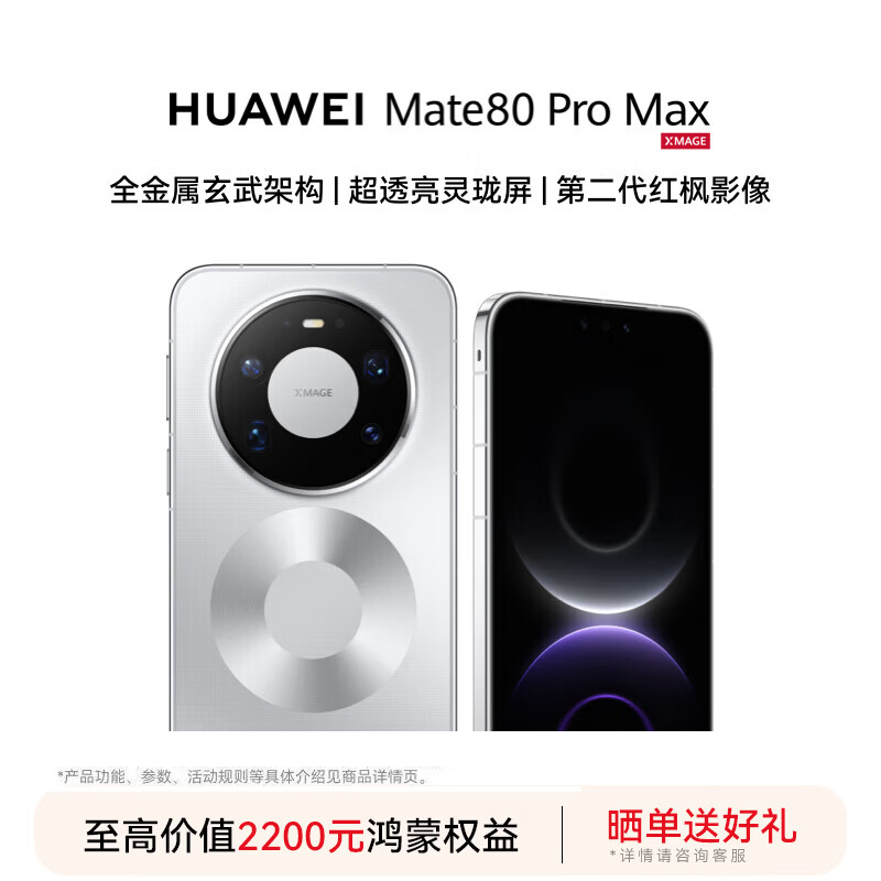 华为(HUAWEI)Mate 80 Pro Max 新品旗舰手机华为mate80promax手机 极地银 16GB+512GB 全网通