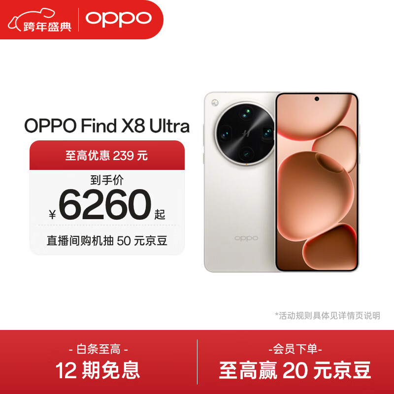 OPPO Find X8 Ultra 夜景人像专业镜头 丹霞原彩镜头 骁龙8至尊版 2K极窄边直屏 AI 5G旗舰手机 月光白 16GB+512GB