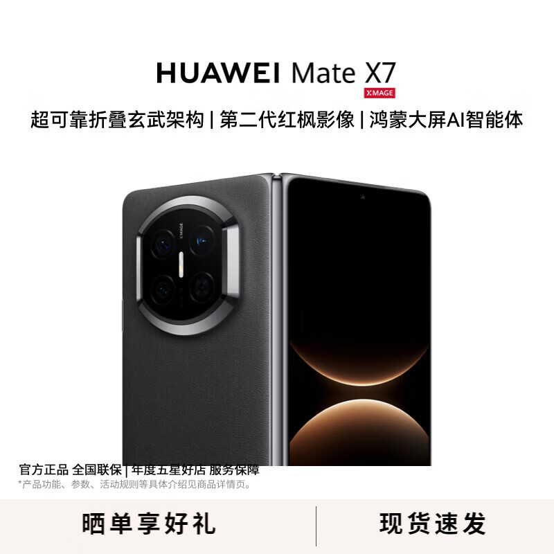 HUAWEI Mate X7 折叠屏手机 超可靠折叠玄武架构 华为折叠屏鸿蒙 华为matex7手机 官方正品 曜石黑 16GB+512GB(典藏版)全网通