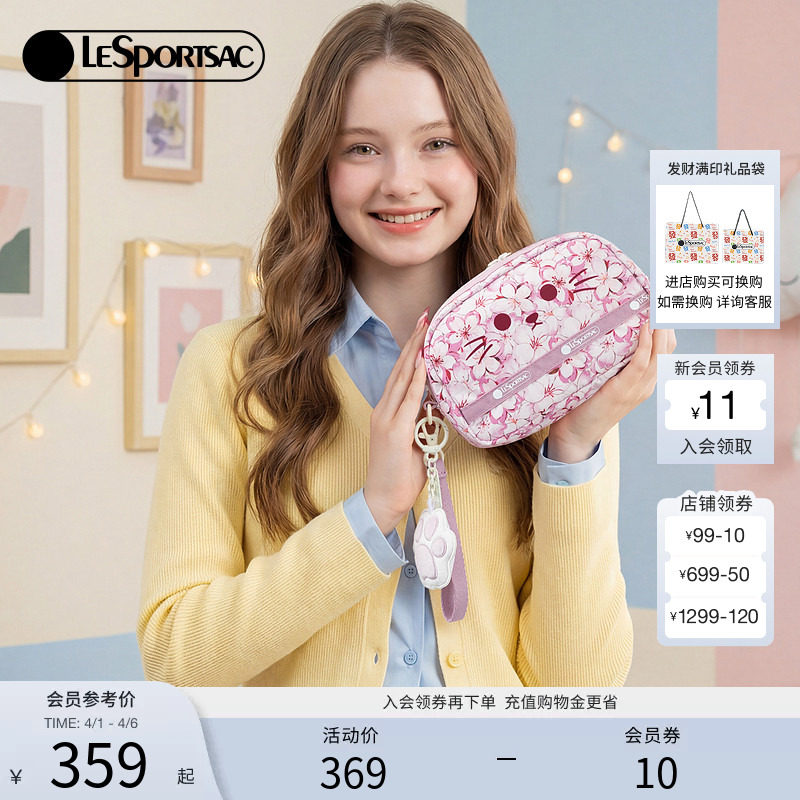 LeSportsac乐播诗新款碎花萌宠系列可爱休闲喵爪樱花手机包手拿包