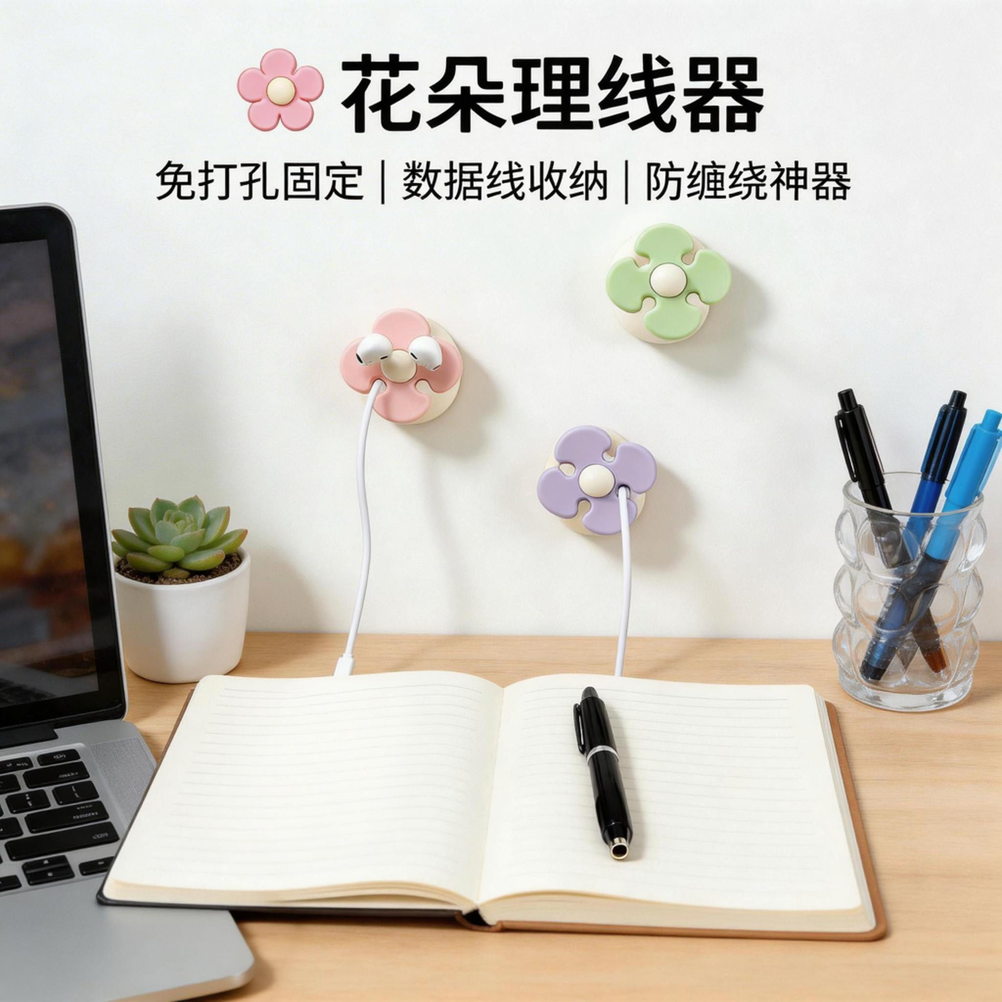 花朵理线器桌面数据线整理手机充电线固定器免打孔收纳神器