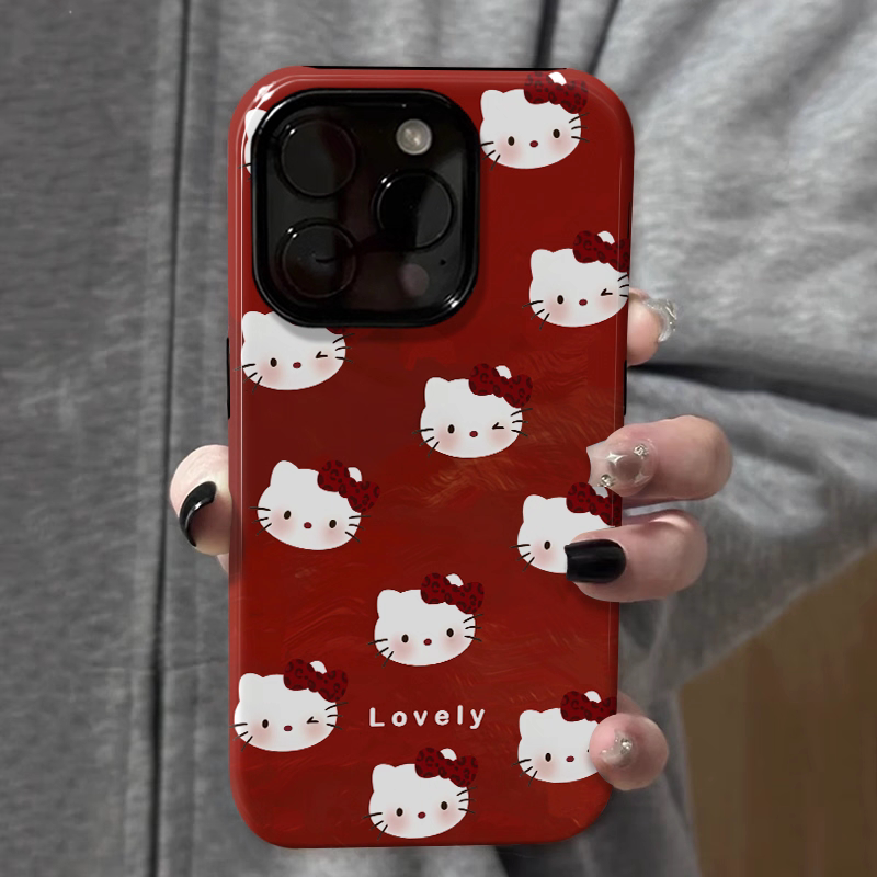 复古红港风kitty菲林二合一手机壳适用苹果16nova13华为p70mate60小米15opporen13ovivo荣耀300iPhone15防摔