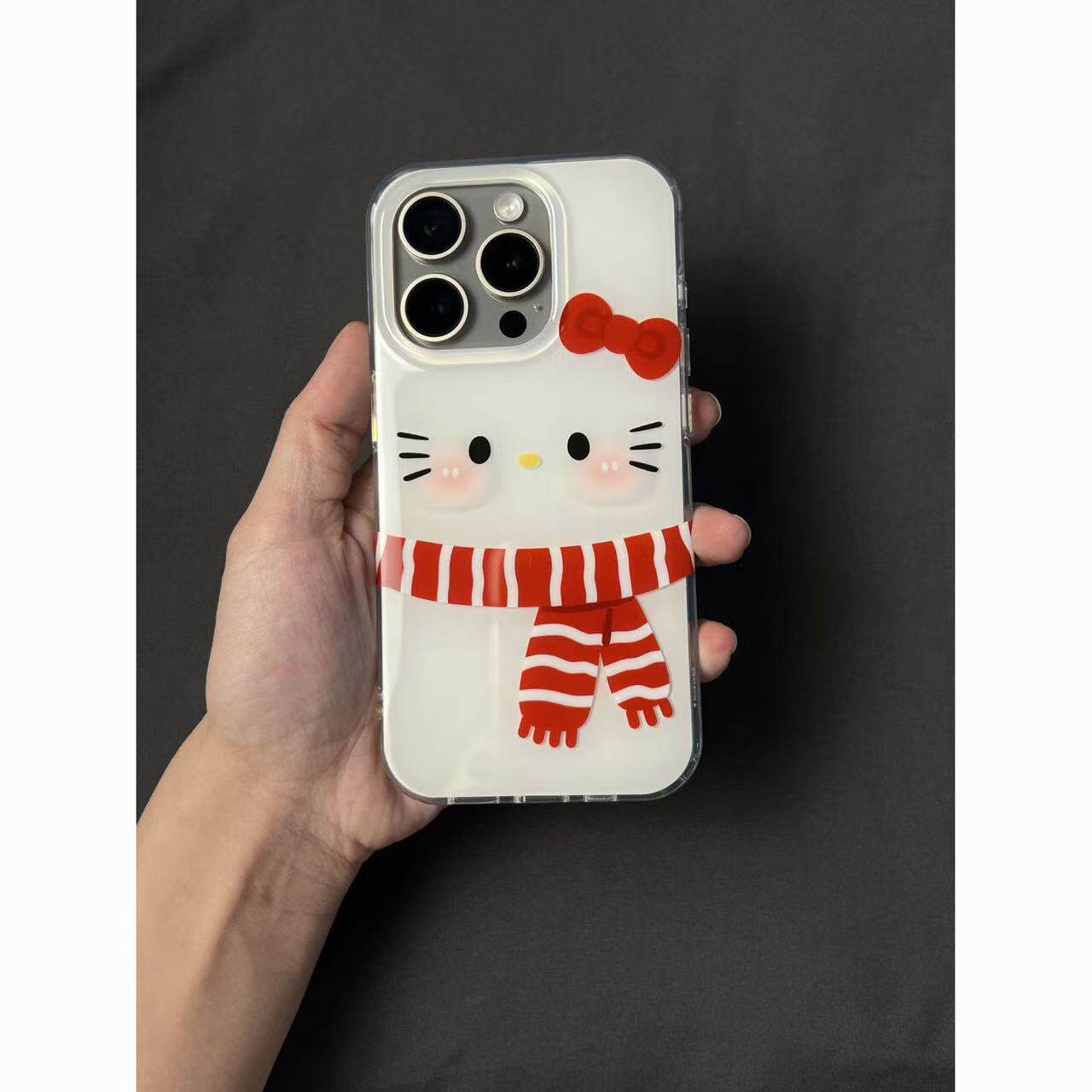 围巾凯蒂猫双层白色印花适用于苹果16手机壳13 14 15新款16promax